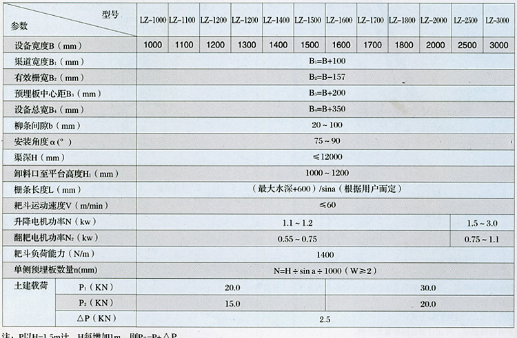 一、用途 它適用于大中型的自來水廠、雨/污水提升泵站、污水處理廠及電廠進水口等處,以攔截和清除水中粗大的漂浮物和底部沉積物,保護水泵輪,減輕后續(xù)工藝設備的處理負荷。 三、主要技術參數和安裝尺寸表